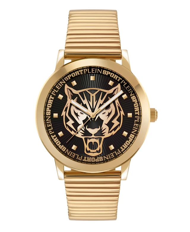 Plein Sport Men's Iron Tiger 3 Hand Quartz Ip Yellow Gold Bracelet 44mm