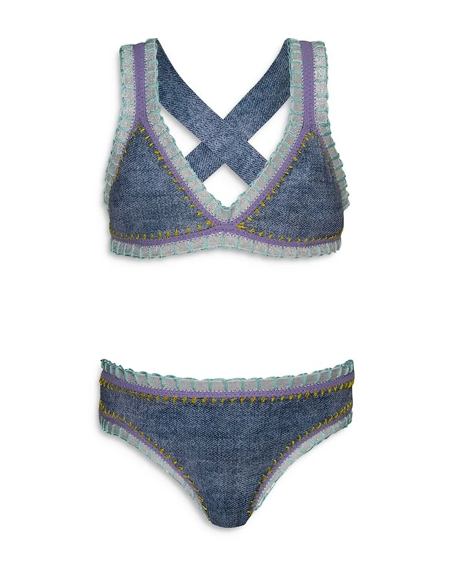 Girls' Sporty Embroidered Two Piece Swimsuit - Little Kid, Big Kid