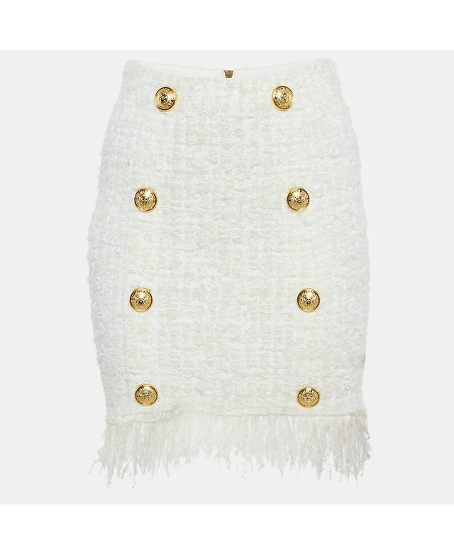 Pre-Owned Balmain Women's White Tweed Button Detail Pencil Skirt