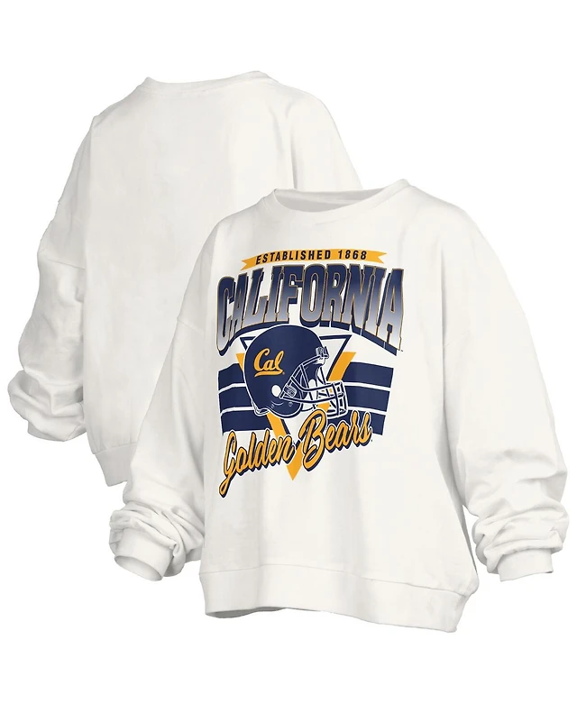 Pressbox Women's White Cal Bears Oversized Janice Retro Waist-Length Pullover Sweatshirt