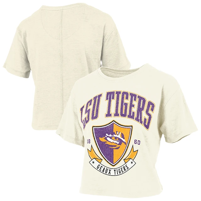 Women's Pressbox Cream LSU Tigers Buckler Vintage Cropped T-Shirt