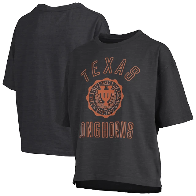 Women's Pressbox Black Texas Longhorns Motley Crew Bishop Waist Length Oversized Slub T-Shirt