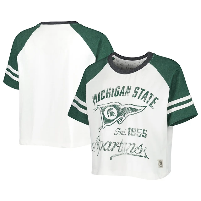 Women's Pressbox White Michigan State Spartans Melange Beaumont Cropped Raglan T-Shirt
