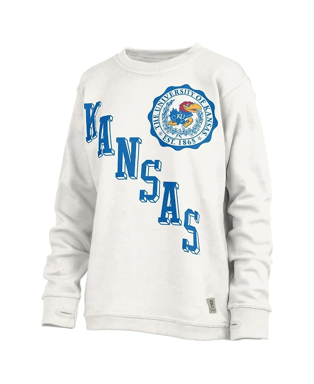 Women's Pressbox White Kansas Jayhawks Shoreline Sundown Pullover Sweatshirt