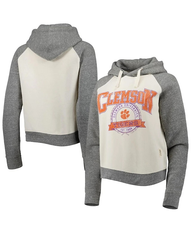 Pressbox Women's Cream/Heather Gray Clemson Tigers Cody Tri-Bend Raglan Pullover Hoodie