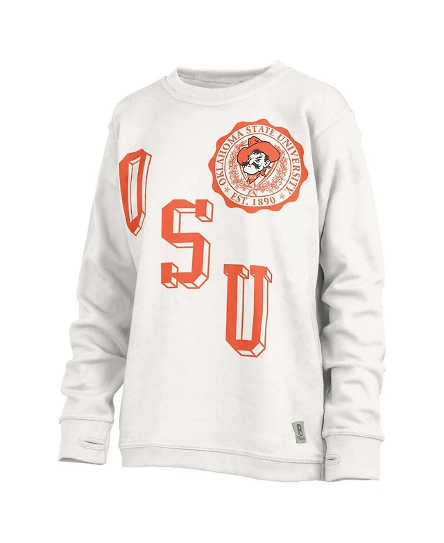 Women's Pressbox White Oklahoma State Cowboys Shoreline Sundown Pullover Sweatshirt