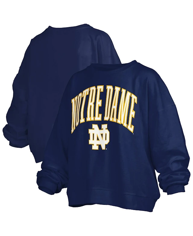 Pressbox Women's Navy Notre Dame Fighting Irish Janise Arch Over Logo Waist Length Oversized Pullover Sweatshirt