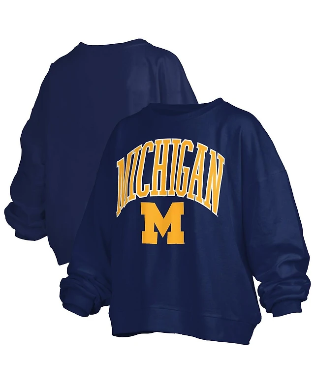 Pressbox Women's Navy Michigan Wolverines Janise Arch Over Logo Waist Length Oversized Pullover Sweatshirt
