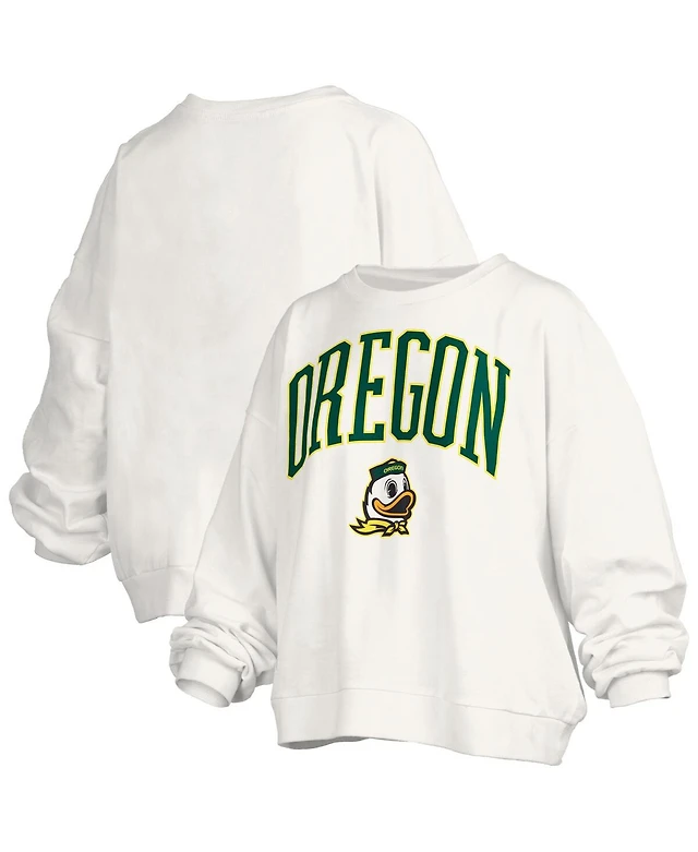 Pressbox Women's White Oregon Ducks Janise Arch Over Logo Waist Length Oversized Pullover Sweatshirt