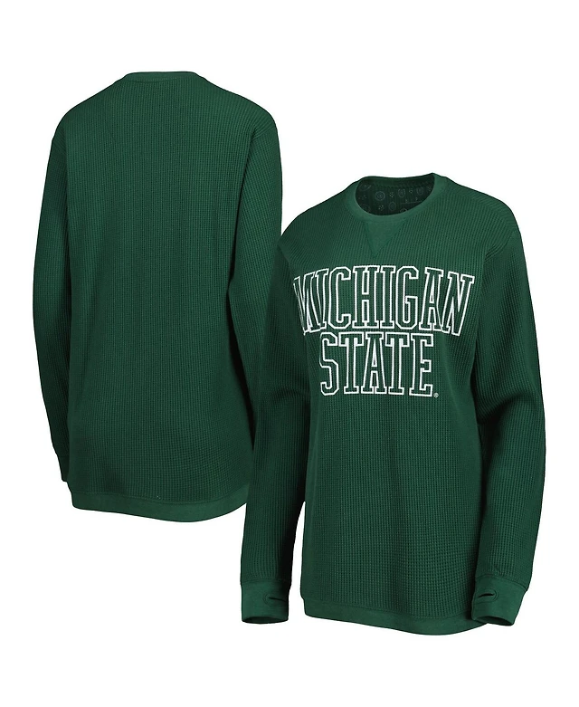 Women's Pressbox Green Michigan State Spartans Surf Plus Size Southlawn Waffle-Knit Thermal Tri-Blend Long Sleeve T-shirt