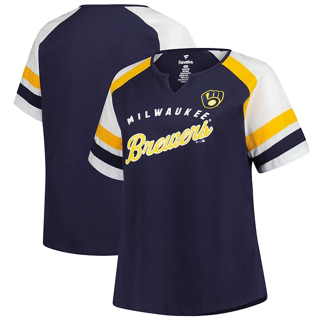 Women's Profile Navy Milwaukee Brewers Plus Sized Arched Notch Neck T-Shirt