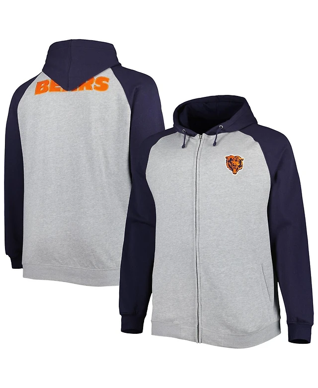 Men's Heather Gray Chicago Bears Big and Tall Fleece Raglan Full-Zip Hoodie Jacket