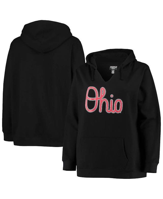 Women's Black Ohio State Buckeyes Plus Size Notch Neck Team Pullover Hoodie