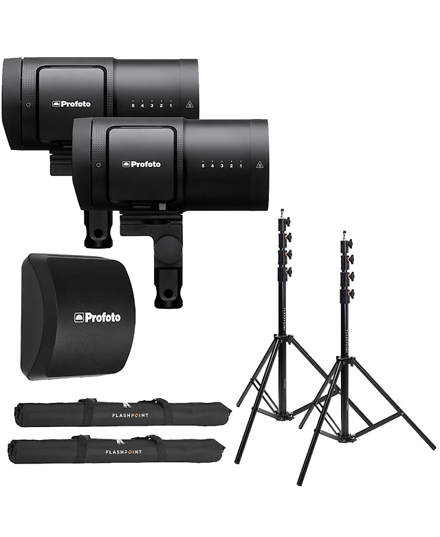 Profoto B20 250W Off Camera Flash Head Duo Kit, Bundle with Extra Li-Ion Battery, 2x 9.5' Air-Cushioned Light Stand