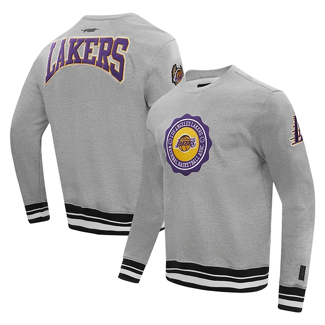 Men's Pro Standard Heather Gray Los Angeles Lakers Crest Emblem Pullover Sweatshirt