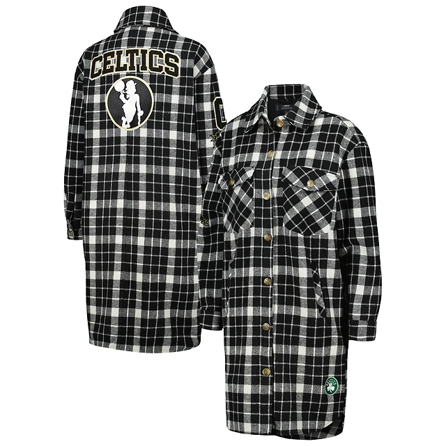 Women's Pro Standard White/Black Boston Celtics Prep Plaid Button-Up Shacket