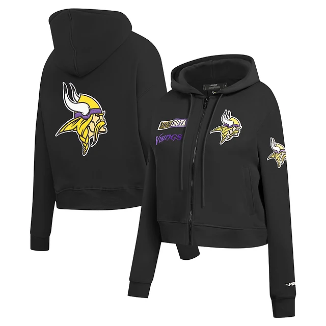 Women's Pro Standard Black Minnesota Vikings Jeweled Cropped Pullover Hoodie
