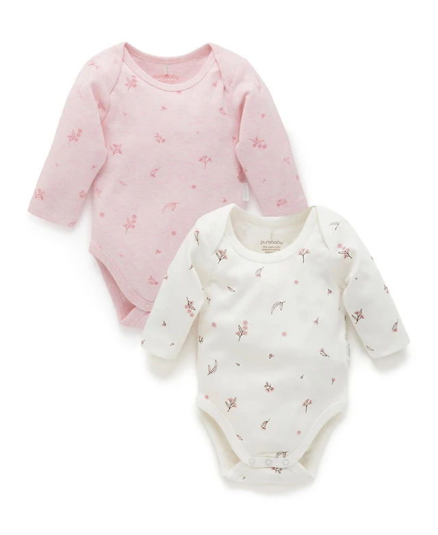 Purebaby Baby Girls Easy Neck L/S Bodysuit 2 pack