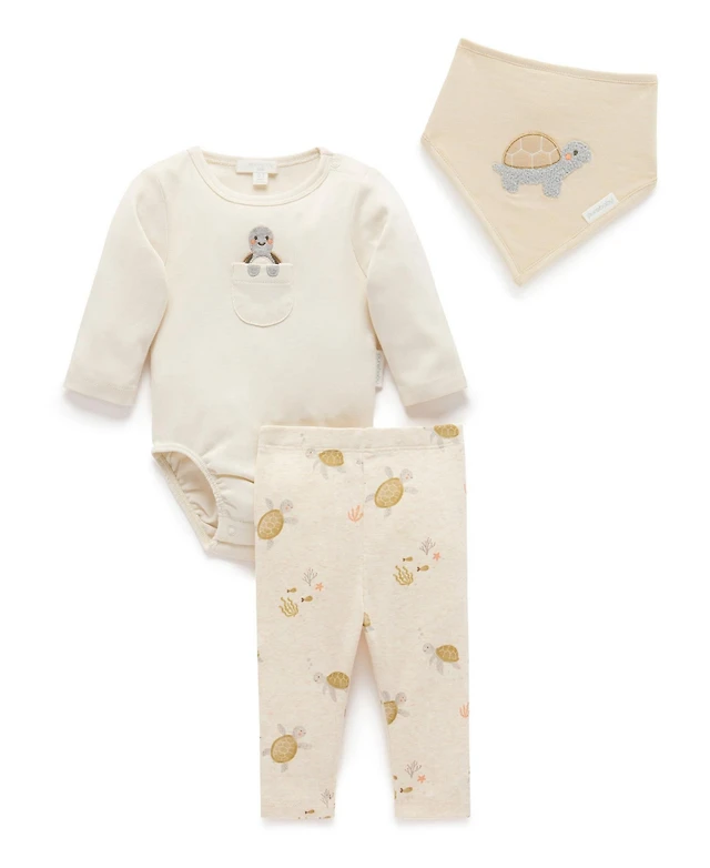 Purebaby Baby Bodysuit, Leggings and Bib 3 Piece Gift Set