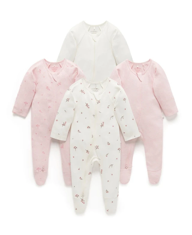 Purebaby Baby Girls Zip Coverall 4 Pack
