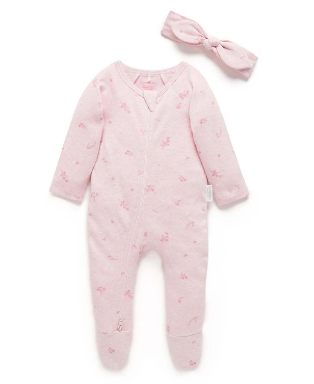 Purebaby Baby Girls Zip Coverall & Headband Set