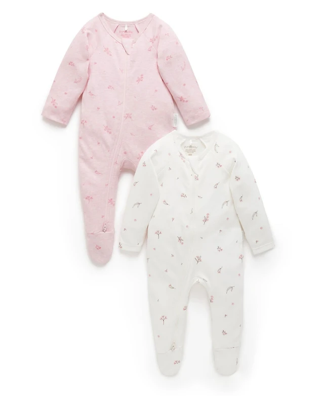 Purebaby Baby Girls 2 Pack Zip Coverall