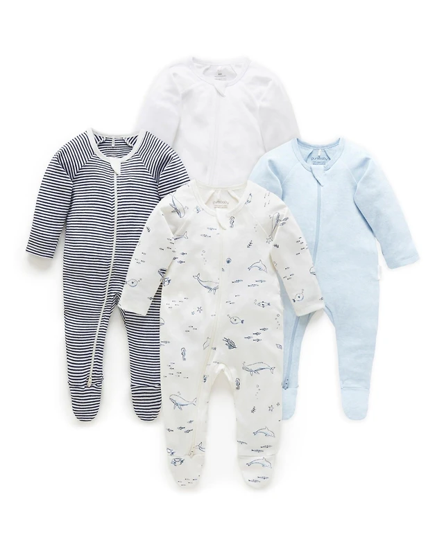 Purebaby Baby Boys Zip Coverall 4 Pack