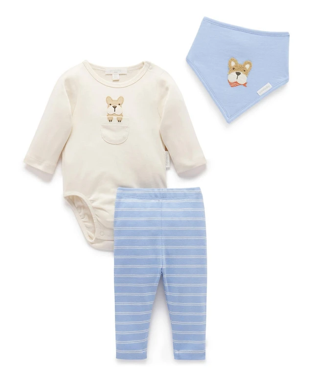 Purebaby Baby Boys Bodysuit, Leggings and Bib 3 Piece Gift Set