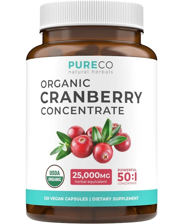 Pure Co Organic Cranberry Concentrate Capsules, Urinary Tract Support and Kidney Cleanse, 120ct