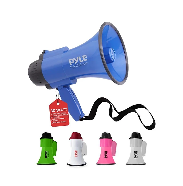 Pyle 30-Watt Portable Megaphone with Siren, Adjustable Volume, Lightweight, Battery Operated
