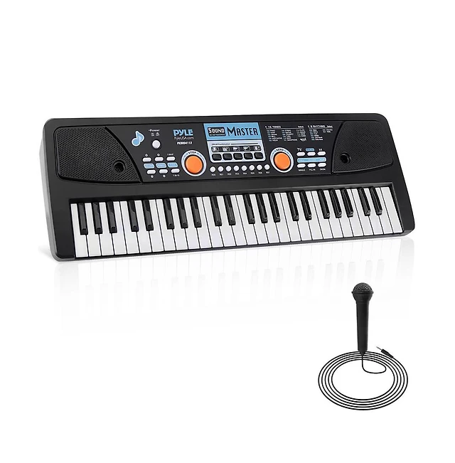 Pyle 49-Key Digital Karaoke Keyboard - Portable Electronic Piano with Rechargeable Battery & Microphone (PKBRD4113