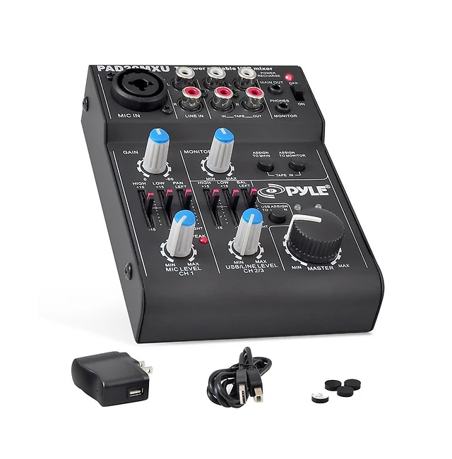 Pyle Compact Dj Mixer with Usb Interface, 5-Channel Pro Audio Mixer