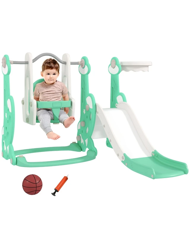 Qaba Toddler Swing and Slide Set with Basketball Hoop, Guitar Theme,