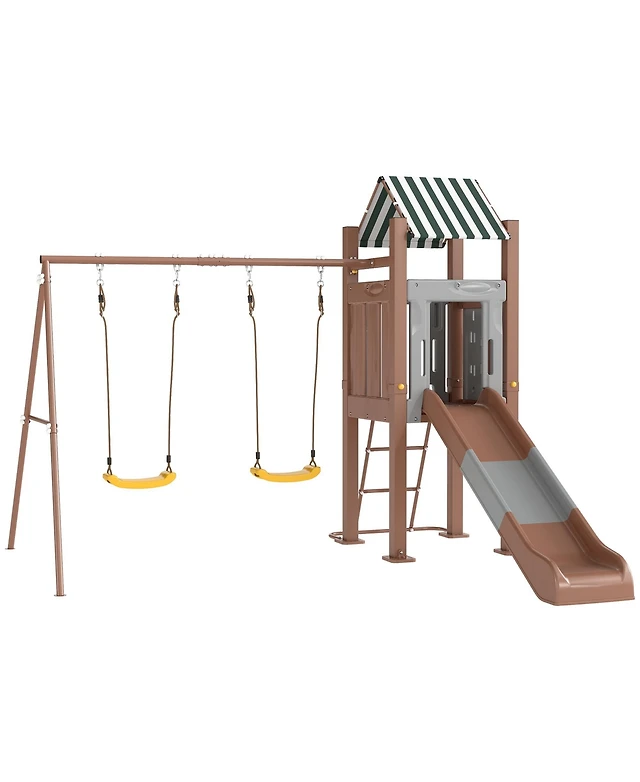Qaba Toddler Swing and Slide Set with Basketball Hoop, Guitar Theme,