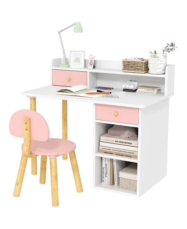 Qaba Kids Desk and Chair Set with Storage Drawer, Study Desk with Chair for Children for Arts & Crafts, Snack Time, Homeschooling, Homework, White