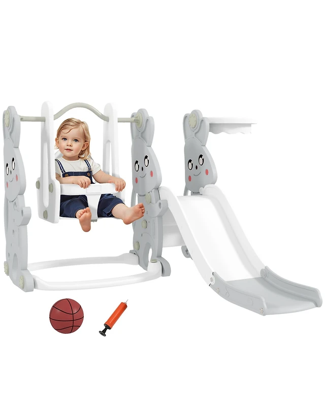 Qaba 4 1 Toddler Slide and Swing Set w/ Climber, Basketball Hoop,