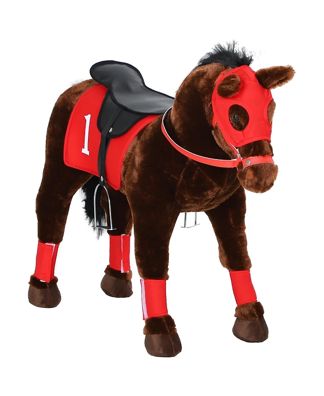 Qaba Baby Rocking Horse, Plush Animal Rocker w/ Realistic Sound, Pedals