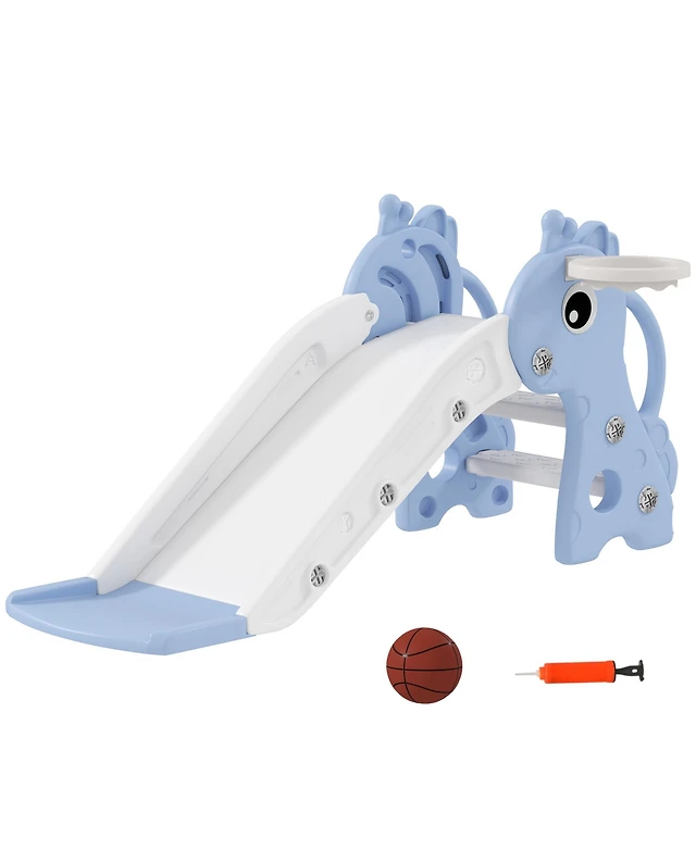 Qaba Kids Slide with Climber and Basketball Hoop, 3-in-1 Baby Slide,