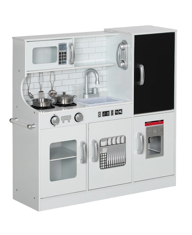 Qaba Play Kitchen, Kids Kitchen Playset w/ Play Phone & Chalkboard,