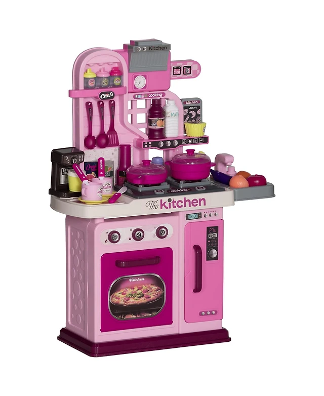 Qaba Kids Play Kitchen with Lights, Sounds, 33 Accessories, Storage