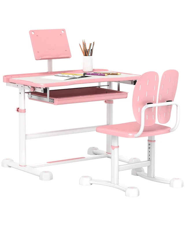 Qaba Height Adjustable Kids Desk and Chairs Set with Tilt Desktop,