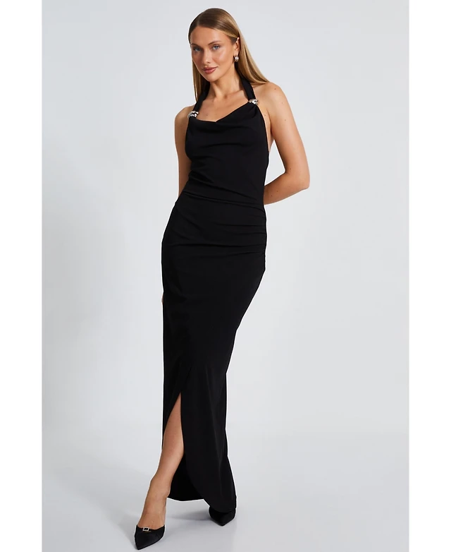 Quiz Women's Scuba Crepe Buckle Detail Halter Neck Maxi Dress