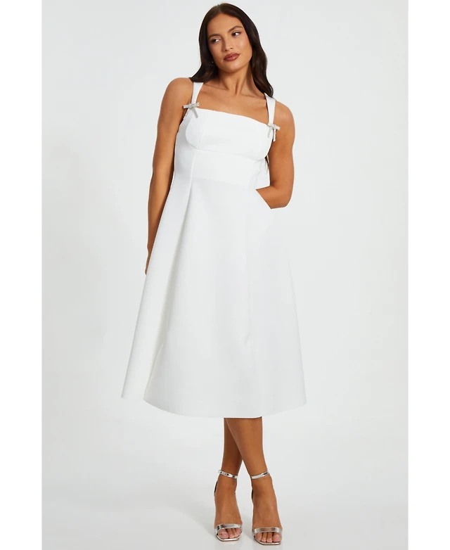 Quiz Women's Scuba Foam Midi Skater Dress with Diamante Bows