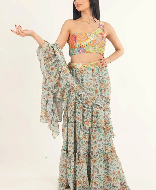 Raas Women's One-Shoulder Floral Ruffle Saree Dress