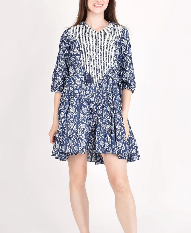 Raas Women's Fit and Flare Midi Dress with Hand emboidered torso