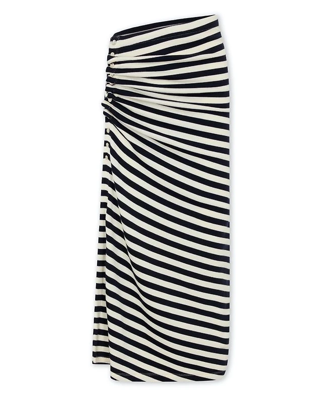Draped Long Jersey Skirt Cream And Orange Stripes