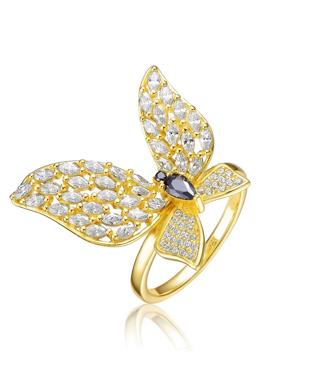 Ra 18K Rose Gold and Black Plated Multi Colored Cubic Zirconia Modern Butterfly Ring