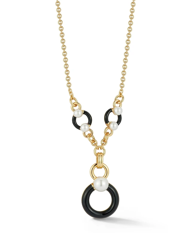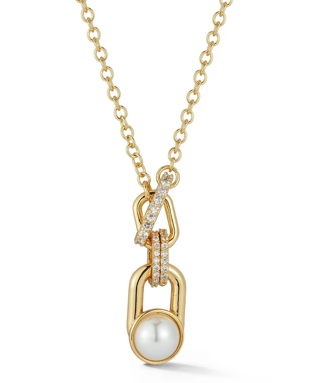 Rachel Zoe Gold Plated Pearl Tag Necklace