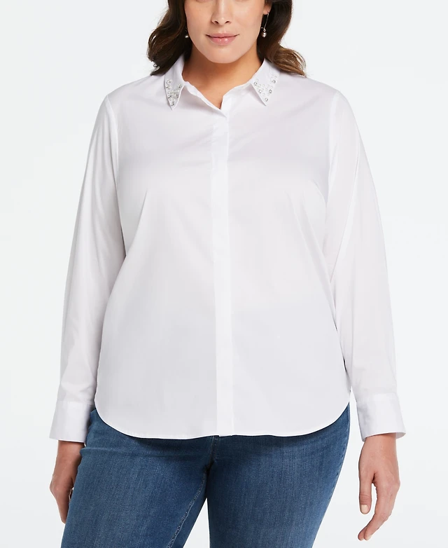 Ella Rafaella Plus Ruched Sleeve Embellished Collar Blouse