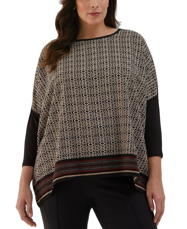 Ella Rafaella Plus Size Medallion Print Knit 3/4 Sleeve Top